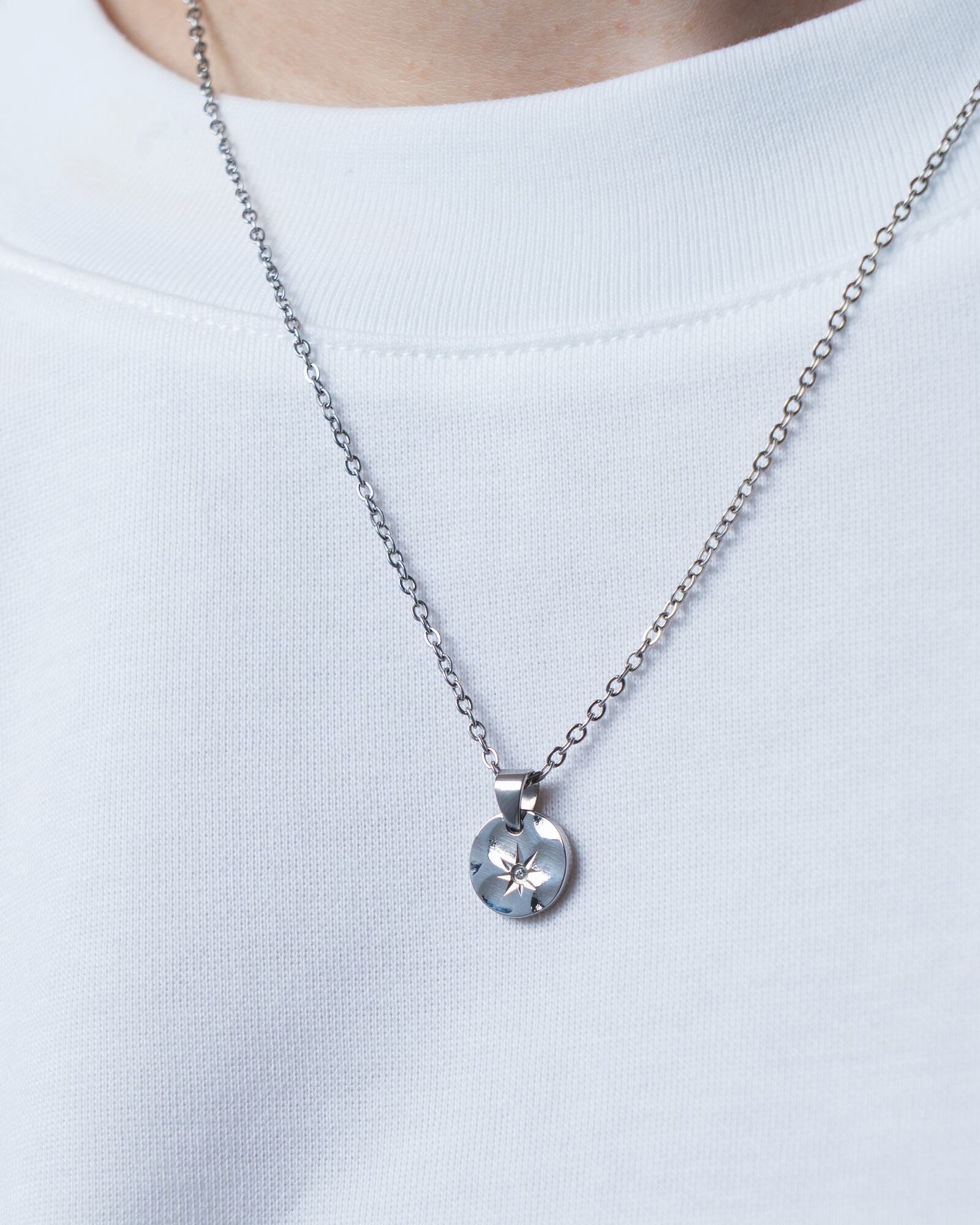 太陽モチーフのチャームがかわいい、シンプルなネックレスです。