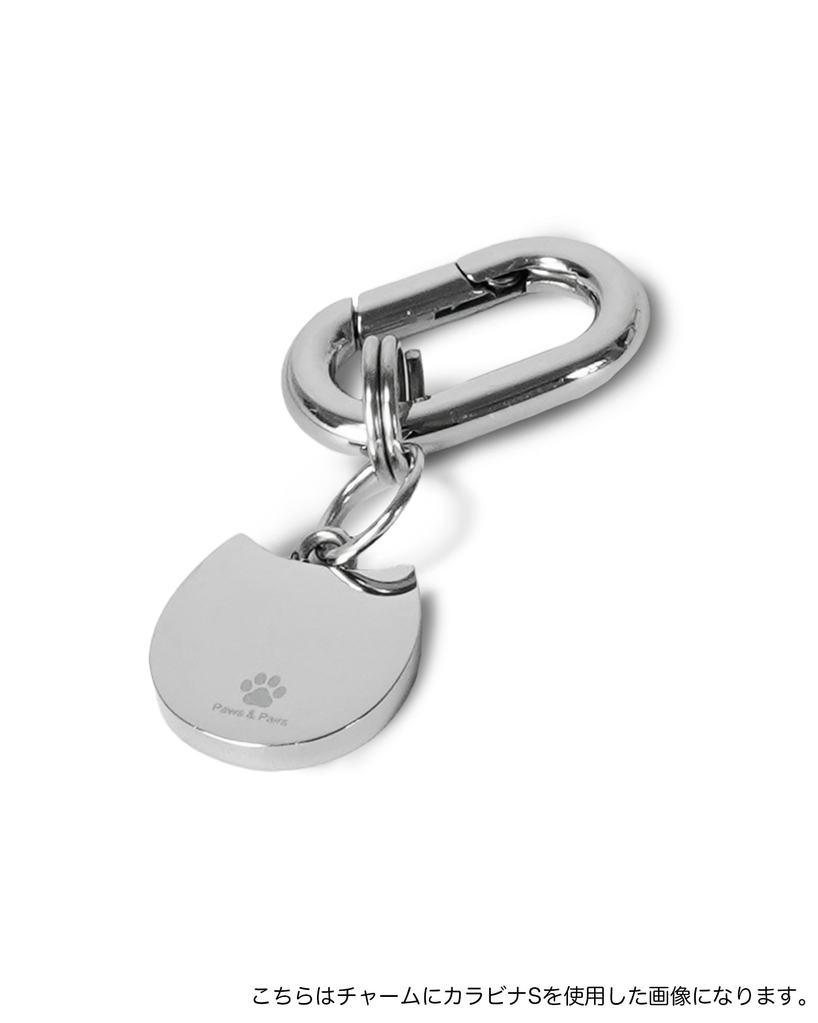 首輪やハーネスの金具パーツなどに取り付けれます。