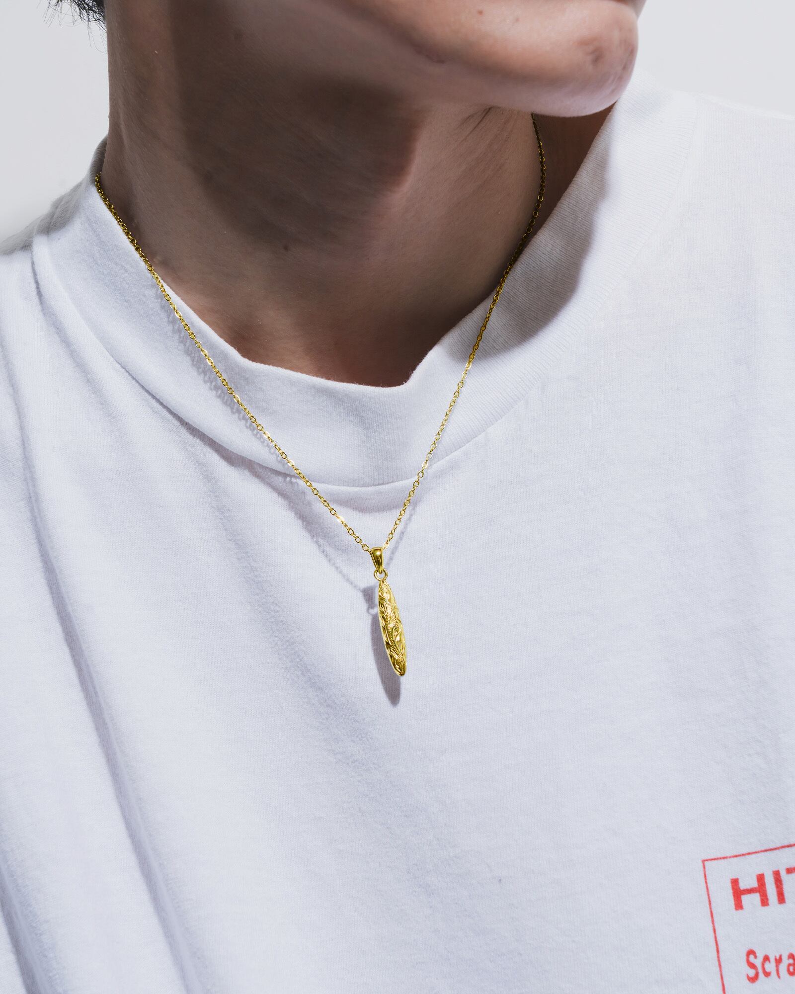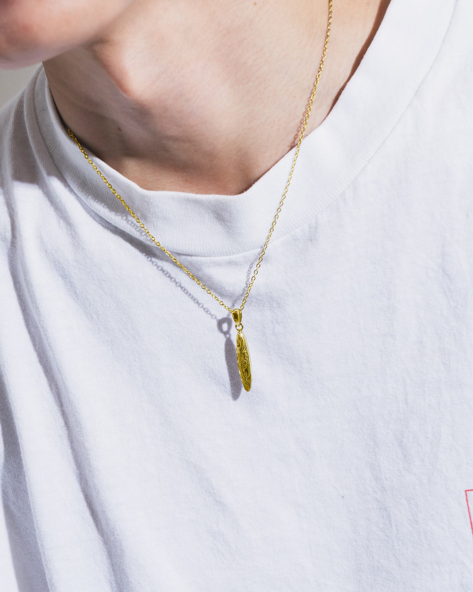 自由と挑戦、そして海との絆を象徴するサーフボードモチーフのネックレス。