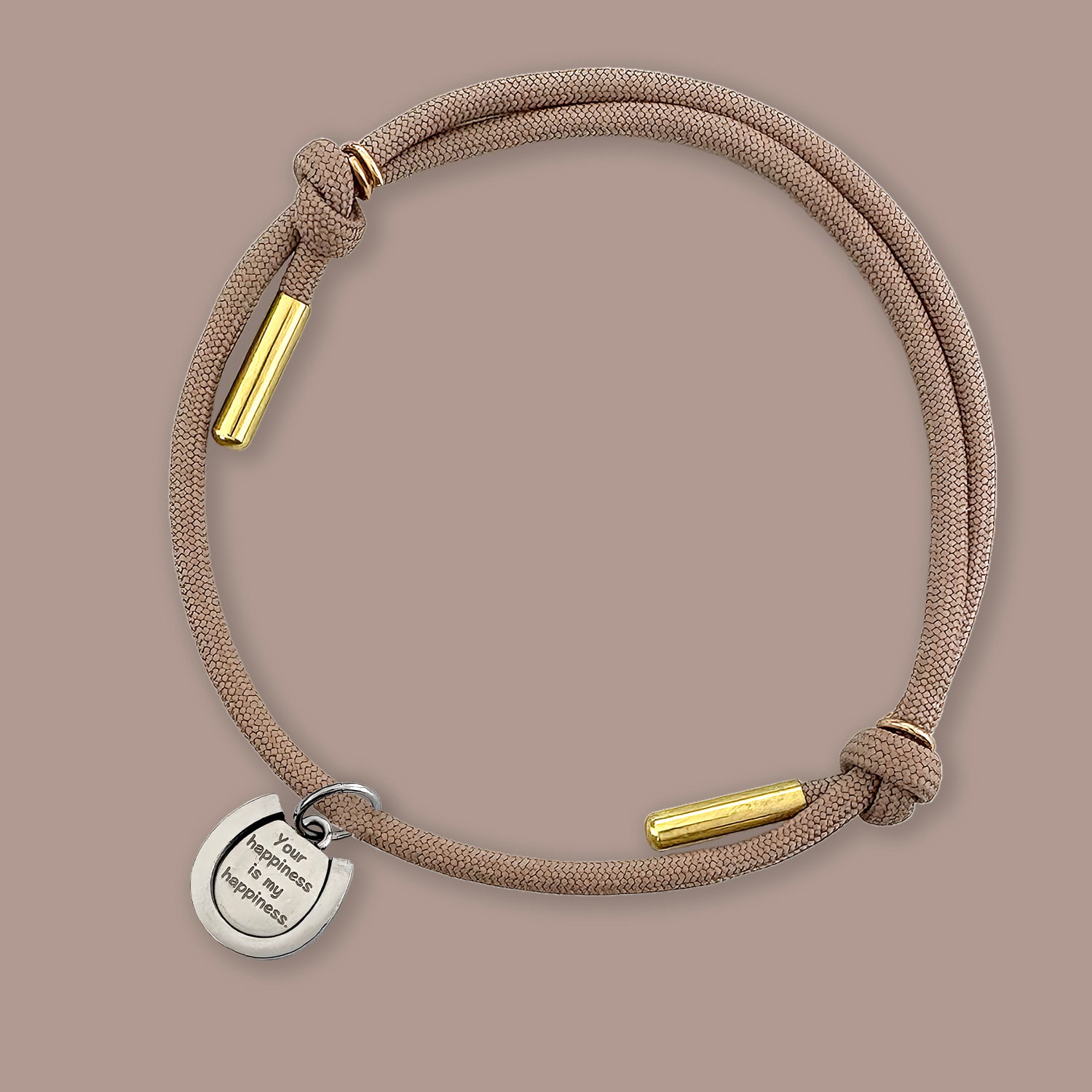 チャームには、「Your happiness is my happiness.」(あなたの幸せは私の幸せ)」のメッセージ入り。